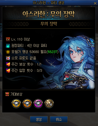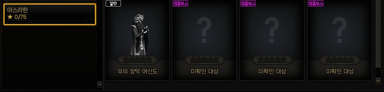 | 추가 | 아스라한 : 무의 장막 클리어 |
