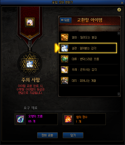 | 아스라한 융합 에픽 장비 | 융합할 장비 | 융합된 장비 |