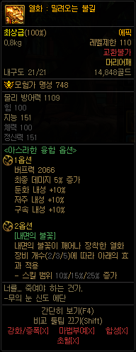 버프력 2066 최종 데미지 5% 증가 중독 내성 +15% |