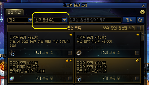 · 선택 옵션 우선 정렬 메뉴가 추가됩니다.