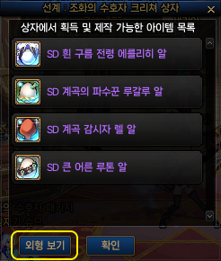 다른 수단을 통한 외형 확인이 아닌, 게임 내에서 기능 제공이 필요하다고 생각하여 일부 상자들에 <외형 보기> 버튼을 추가 하였습니다.