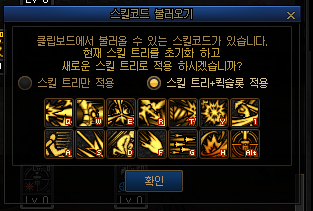 - · 클립보드에 스킬코드가 복사되어 있다면, 스킬창에서