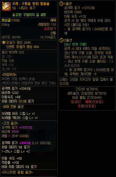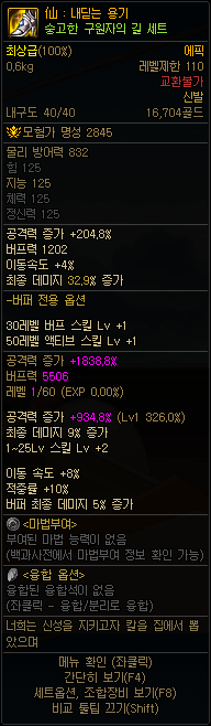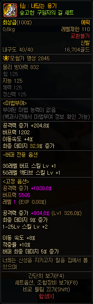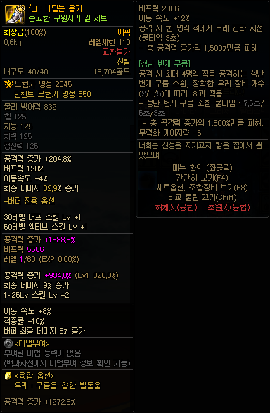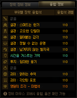 버튼 클릭 시 동일한 옵션의 110Lv 仙 장비가 표기됩니다.