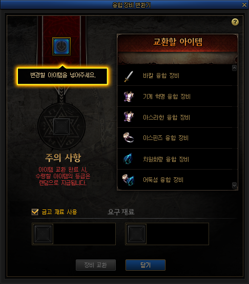 아래의 융합 장비가 융합석으로 변경됩니다.