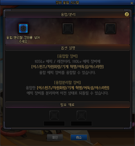 ㄴ 융합 가능 장비 : 좌클릭 - 융합/분리 선택