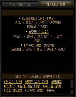 | 기존 장착 장비 정보 - 해시태그 정보 |