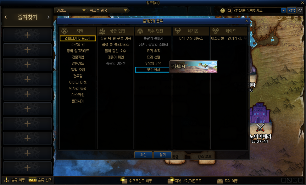 즐겨찾기 - 특수 던전 탭에 <무한화서>가 추가됩니다.