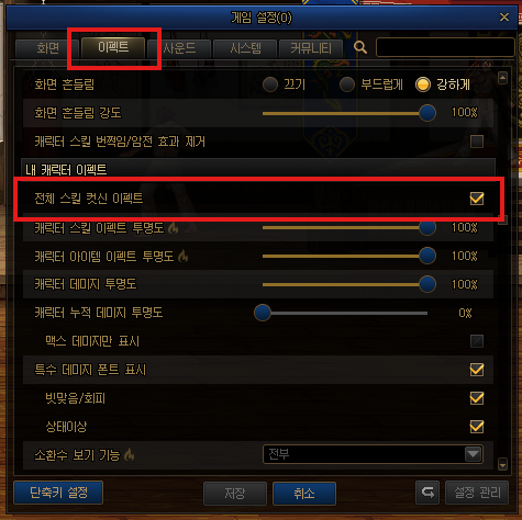 자동 시전 시 진각성 버프 컷신이 출력되며, 기존 전체 스킬 컷신 이펙트 ON/OFF 기능으로 컷신 출력 여부를 조절할 수 있습니다.