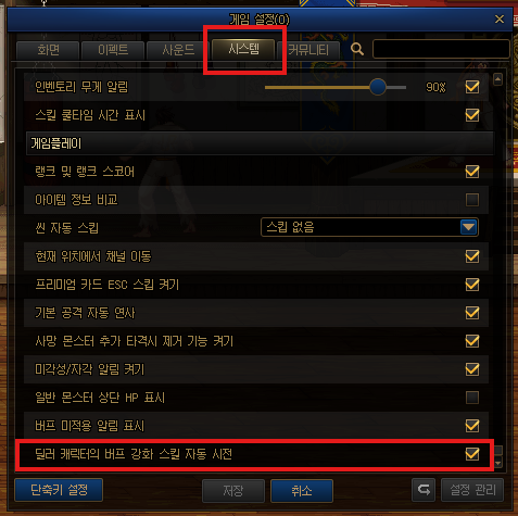딜러 캐릭터의 버프 강화 스킬 자동 시전 기능이 추가됩니다. (결투장 미적용)