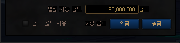 - 해당 버튼에 체크 표시가 되어 있다면 계정 금고에서 골드를 넣거나 뺄 수 없습니다.