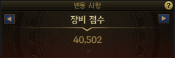 장비 점수 - 캐릭터의 파밍 진행도에 따라 현재 캐릭터의 데미지 기댓값을 객관적으로 확인할 수 있는 수치입니다.